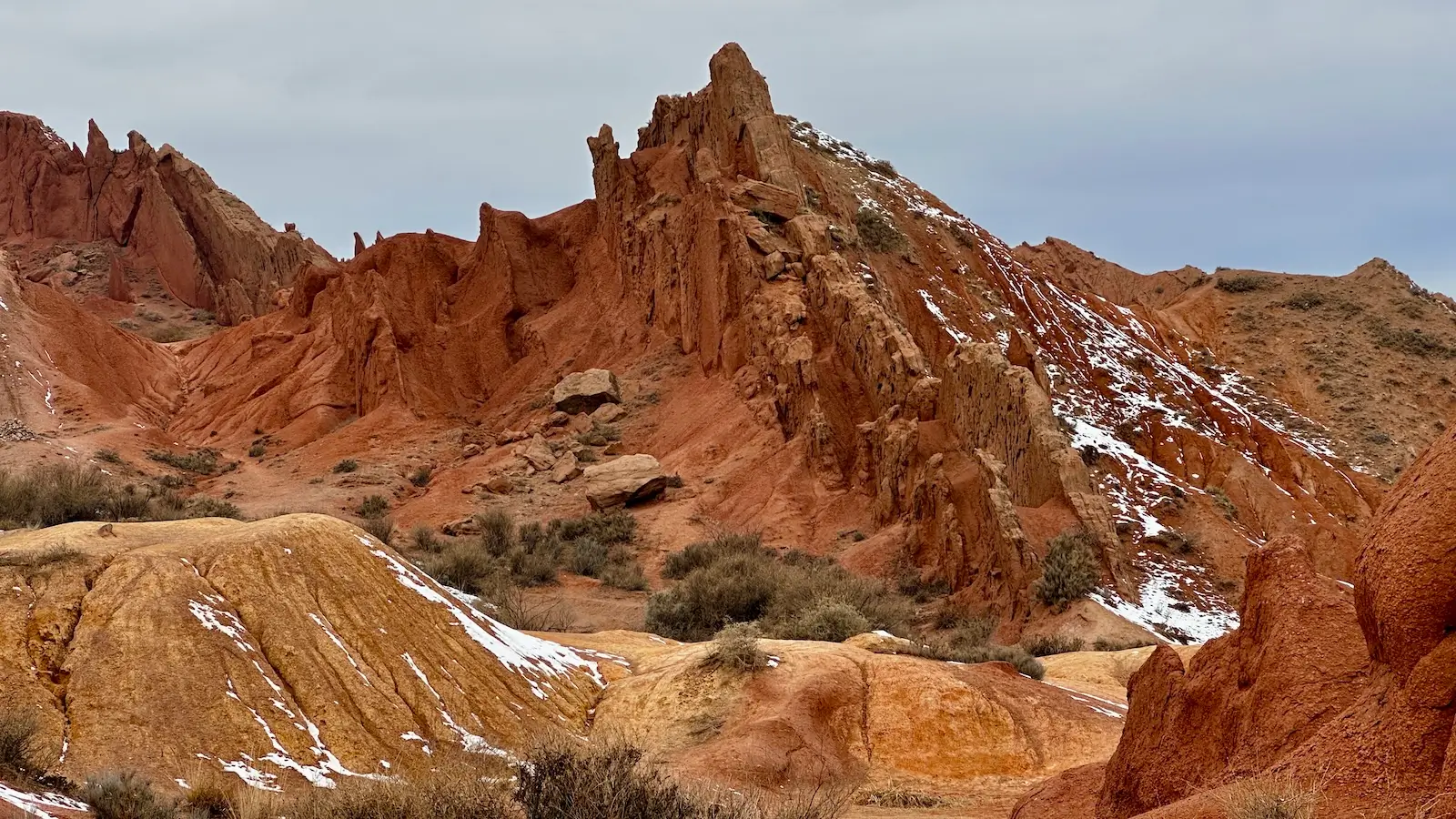 Далее мы отправимся в каньоны Ак-Сай на южном берегу озера Иссык-Куль. Небольшая прогулка к обзорной точке откроет потрясающие виды на красные скалы, озеро и дальние горы.